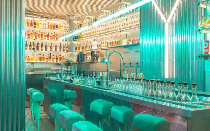 The Forest bar, located at the back of the restaurant, beckons you to its radiant core under a dazzling dome of shattered stained glass. With its reflective metal lining, the round space appears like a kaleidoscope, reflecting the warm tones of its surroundings. Here, the skilled bartenders prepare elixirs and cocktails that leave a lasting impression.